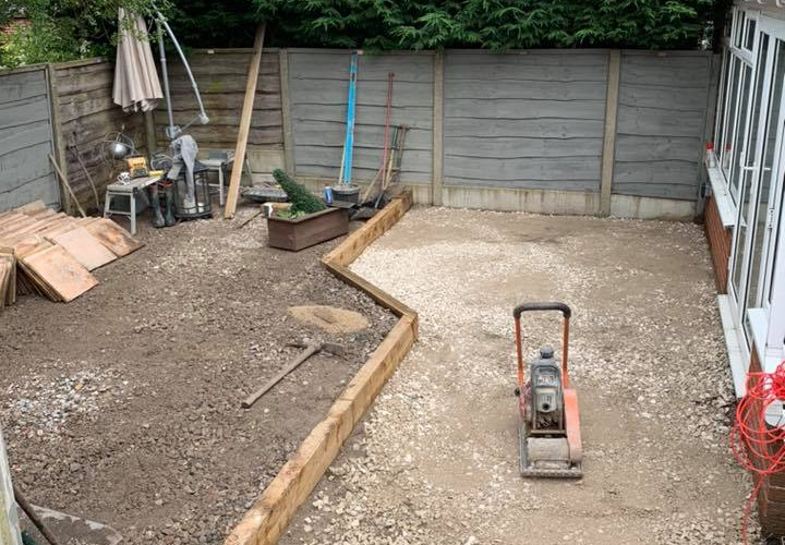 We lifted the existing flags, power washed and relaid them on a new solid base. The old lawned area was then removed and replaced with a high quality Artificial Grass.